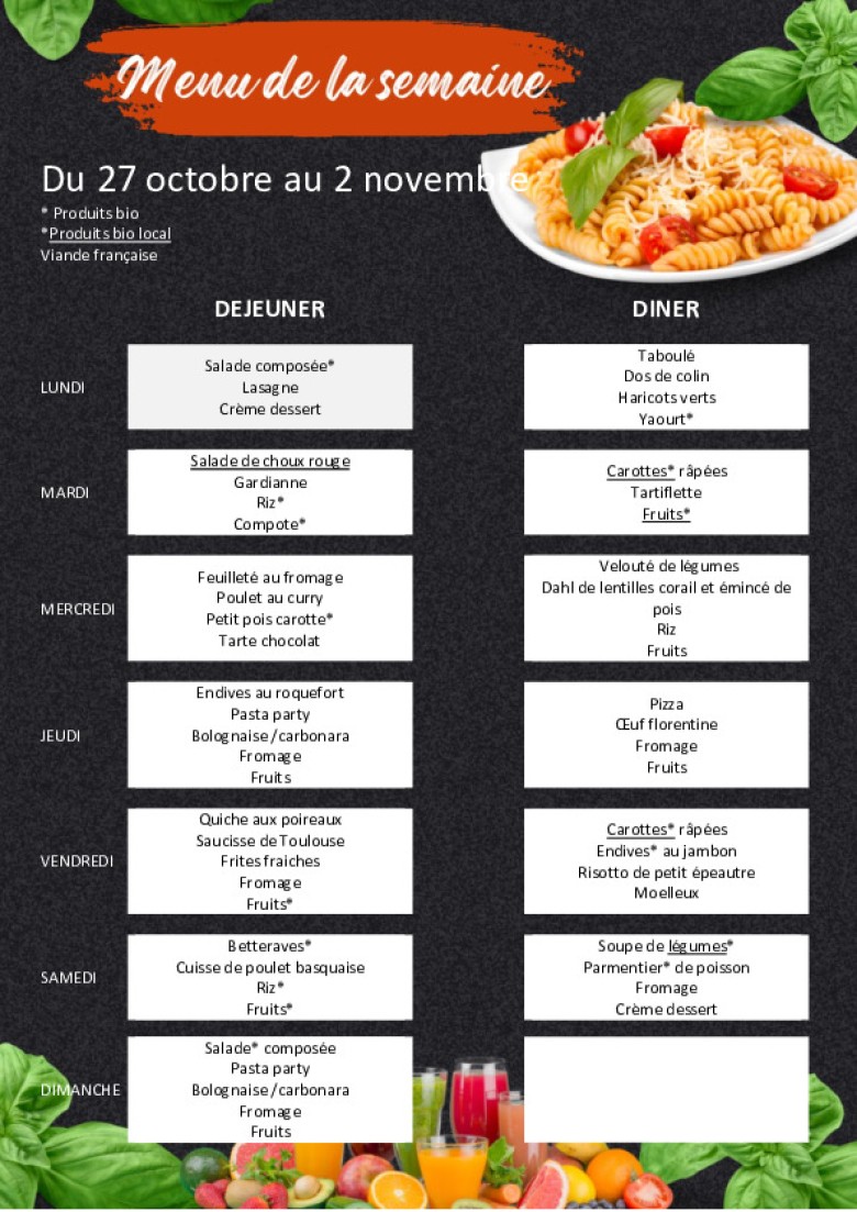 Nos menus équilibrés et variés, sont élaborés avec des fruits et légumes frais de saison et livré en circuit court par nos producteurs locaux.