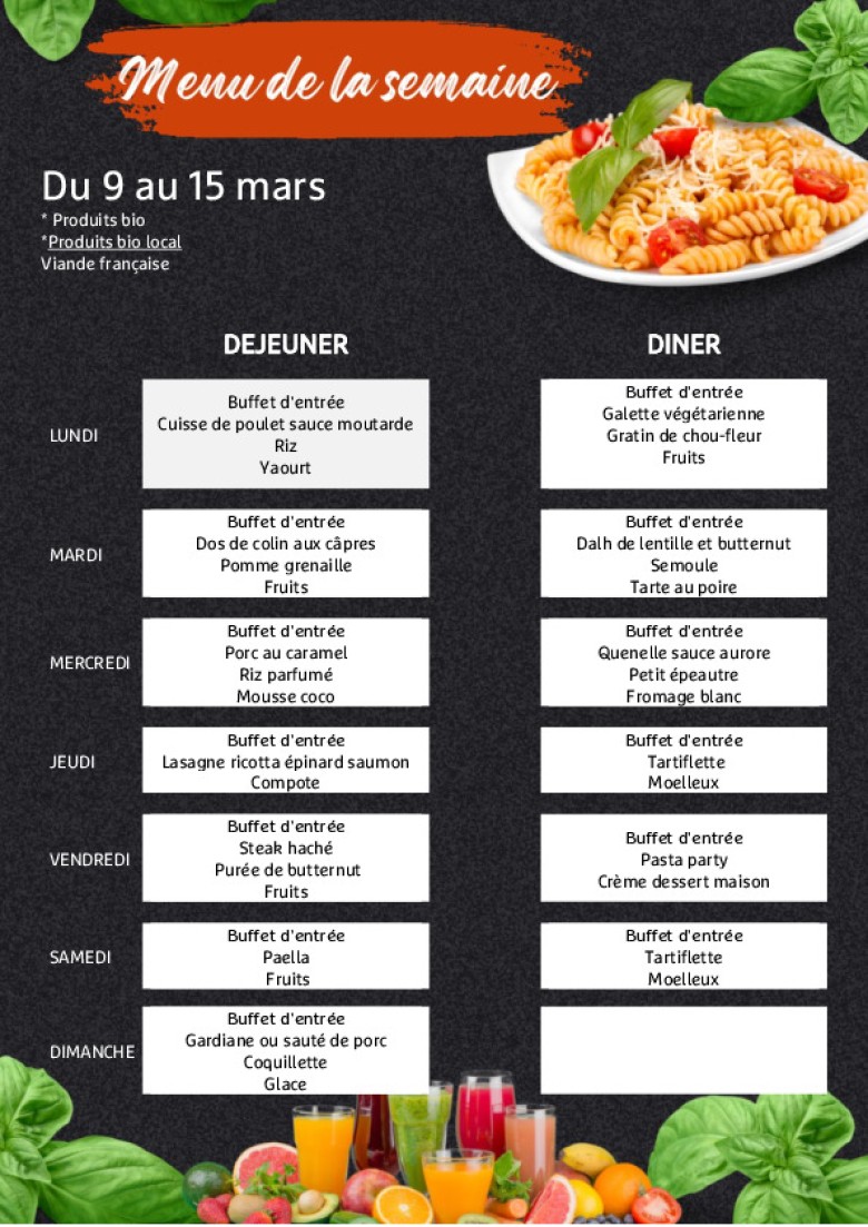 Le menu de la semaine