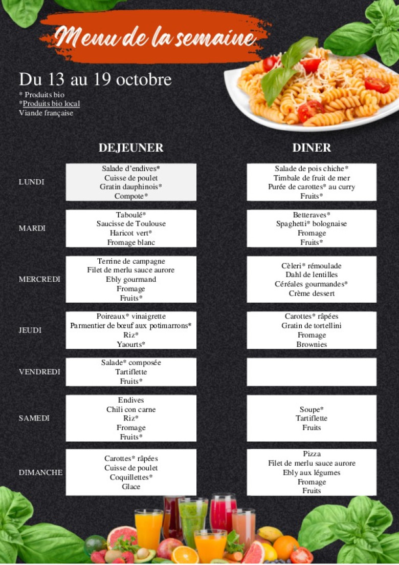 Le menu de la semaine